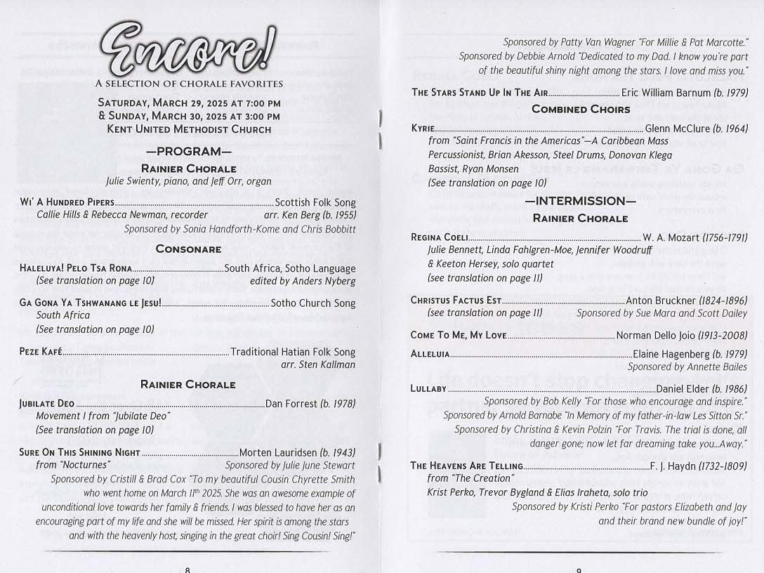 Copyright (c) 2002-2025 Rainier Chorale. All Rights reserved. Please report data problems to Webmaster and website problems to Webmaster | ||||||||||